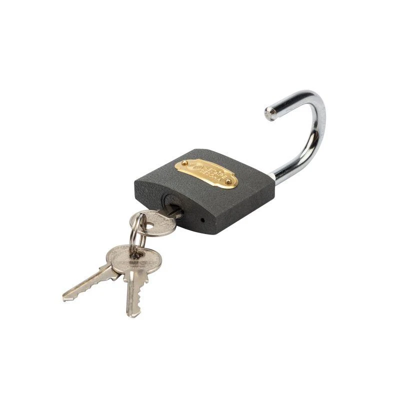 Дужка замка выполнена из закаленной стали, что делает её перекусывание достаточно сложным даже для таких инструментов, как болторезы и арматурные ножницы. Механизм замка выполнен из долговечного и надежного материала.